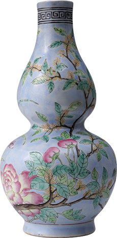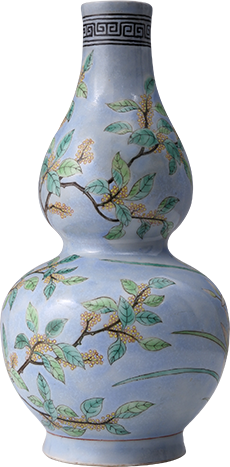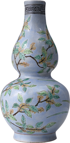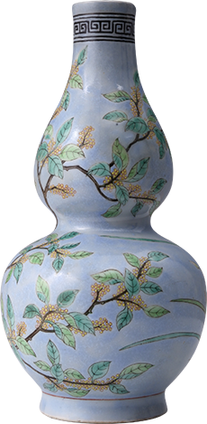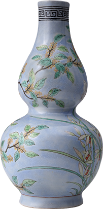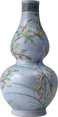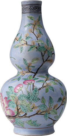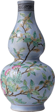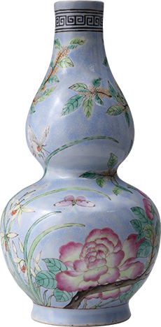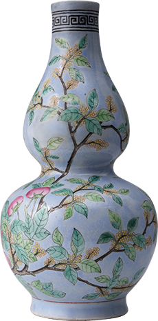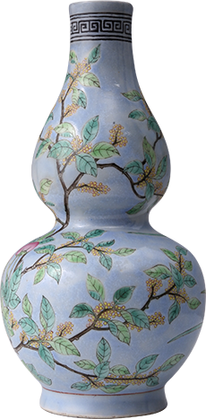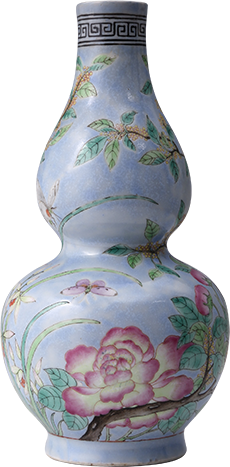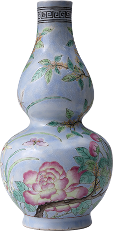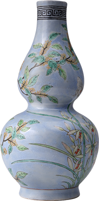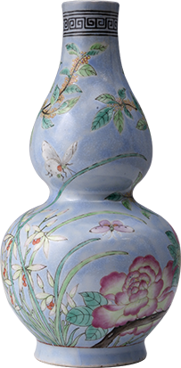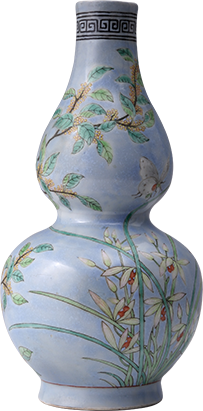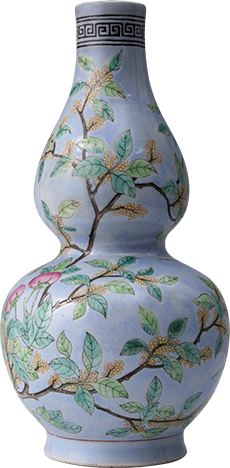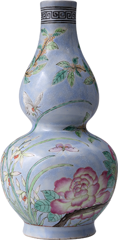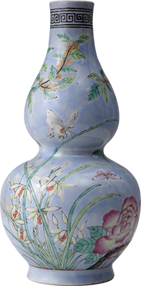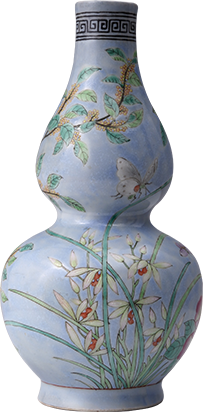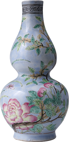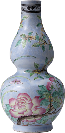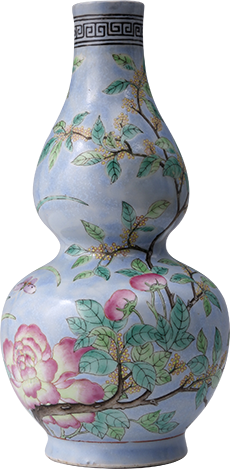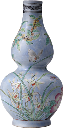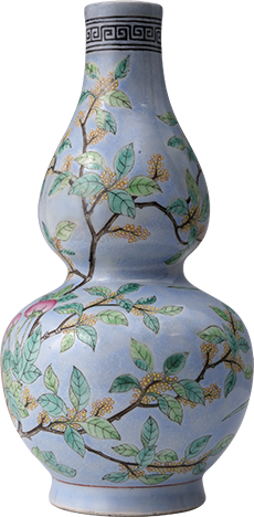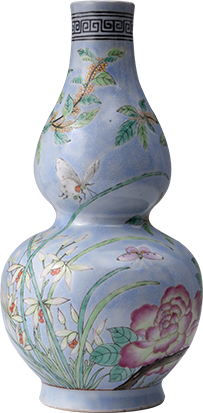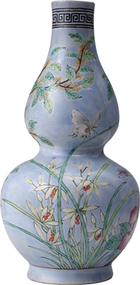 淺藍(lán)地粉彩花卉紋葫蘆瓶